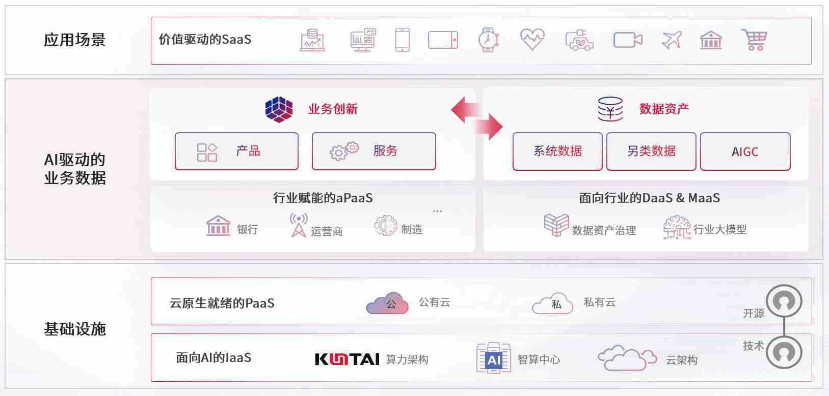 数字时代,,,,围绕企业数字化转型的关键要素,,,,PG娱乐数码开创性的提出数云融合战略和技术体系框架,,,着力在云原生、、、、数字原生、、、AI原生和信创产业上架构产品和服务能力,,,为处在不同数字化转型阶段的快消零售、、、、汽车、、、金融、、、医疗、、、政企、、、、教育、、、、运营商等行业客户提供泛在的敏捷IT能力和融合的数据驱动能力,,构建跨界融合创新的数字业务场景和新业务模式,,,助力企业级客户建立面向未来的核心能力和竞争优势,,,全面推动社会的数字化、、智能化转型升级。。。。
